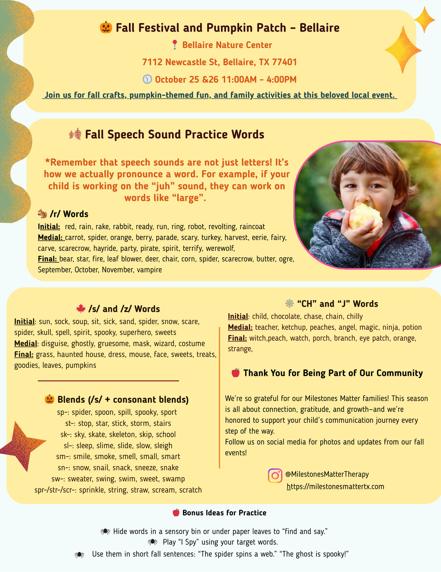 Fall 2025 Newsletter at Milestones Matter 🎃🍂