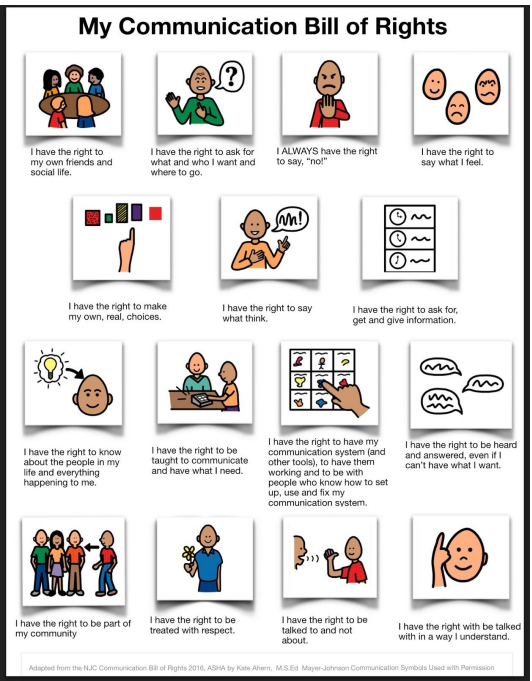 Pivotal to AAC Awareness is the Communication Bill of Rights. This document reminds us that ALL individuals, regardless of their communication challenges, have the right to communicate their needs, choices, and desires.